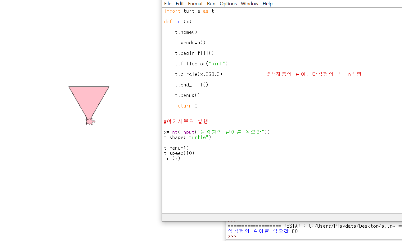 t.begin_fill() #begin_fill()이량 fillcolor("") end_fill()는 세트로