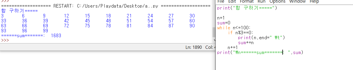 예제)3의 배수 더하기 while 이용/ for 이용 #들여쓰기를 잘하자!!